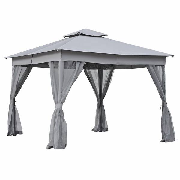 10 ft. x 10 ft. Gray Outdoor Patio Gazebo Tent with Double Roofs and Mosquito Netting