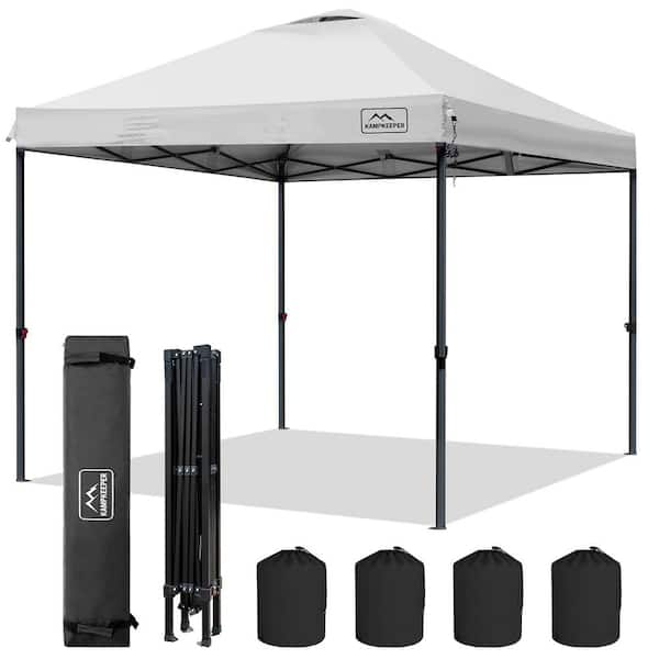 10 ft. x 10 ft. White Pop-Up Canopy with Adjustable Height, Wheeled Carrying Bag, 4 Ropes and 4 Stakes