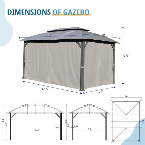 10 ft. x 14 ft. Gray Outdoor Gazebo with Double Roofs, Privacy Curtains, Mosquito Nettings, Heavy-Duty Metal Frame