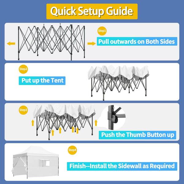 10 ft. x 15 ft. White 3 Height Adjustable Heavy Duty Outdoor Pop Up Canopy Tent with 4 Sidewalls and Roller Bag
