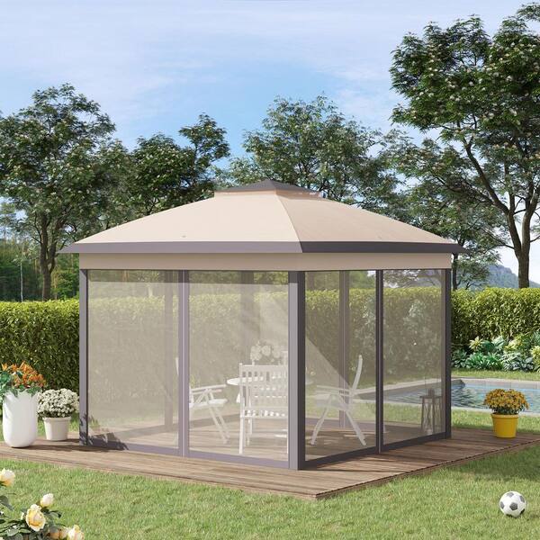 11 ft. x 11 ft. Beige Outdoor Portable Gazebo with Netting and Carry Bag, 121 sq. ft. of Shade