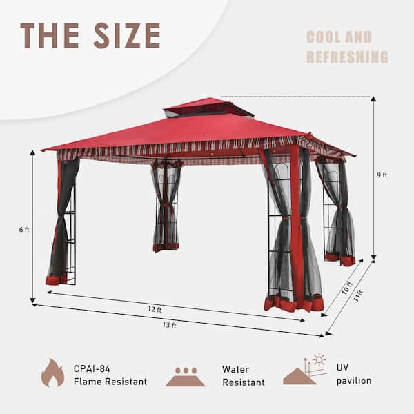13 ft. x 11 ft. Red Double Tier Roof Patio Gazebo with Netting