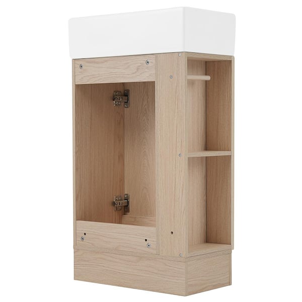 18.6 in. W Single Sink Freestanding Bath Vanity in Natural with White Ceramic Top, 2-tier Shelf, Toilet Paper Holder