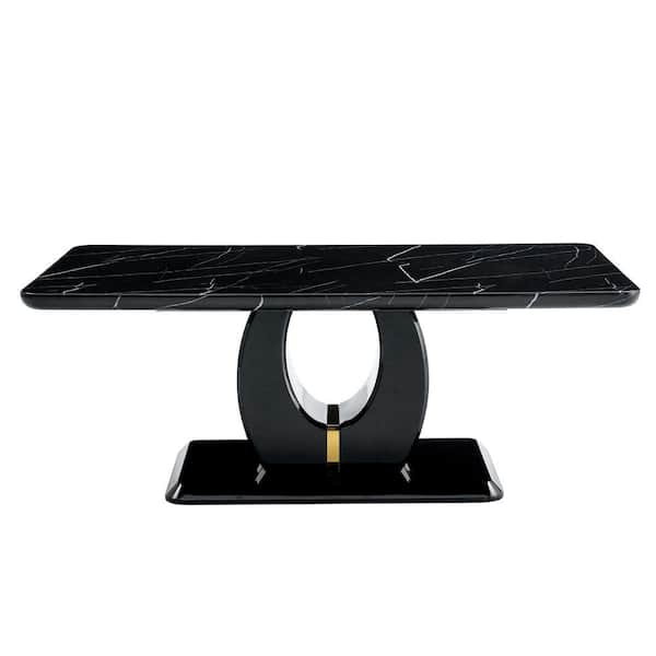 18 in. H Rectangular Outdoor Coffee Table with Black Imitation Marble Pattern Tabletop
