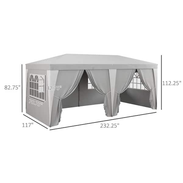 19 ft. x 10 ft. Gray Pop Up Canopy Tent with 6 Removable Sidewalls 4 Windows Adjustable Height