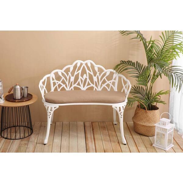 2-Person Metal Outdoor Bench with Brown Cushion