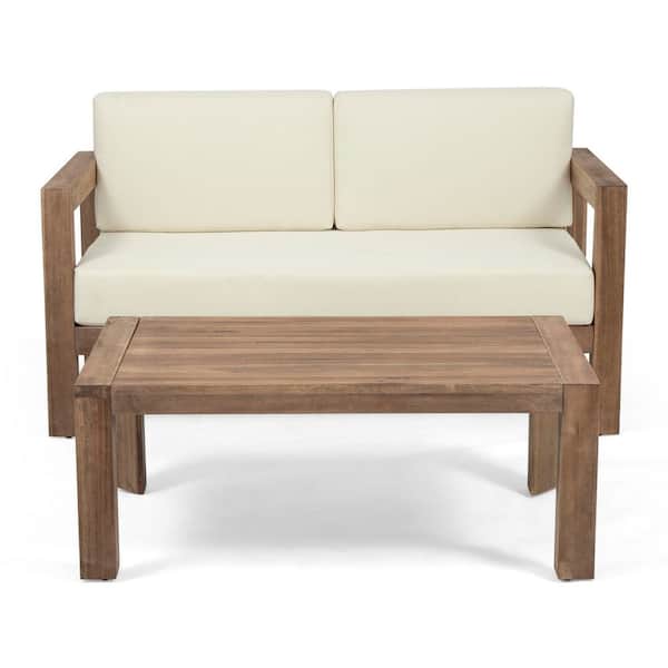 2-Piece Acacia Wood Patio Conversation Set with Beige Cushions