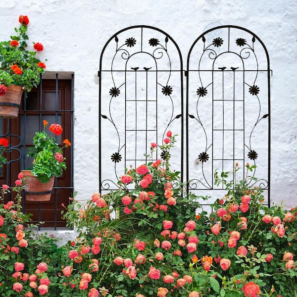 2-Piece Black Metal Garden Trellis 19.7" x 86.7" Rustproof Trellis for Climbing Plants Outdoor Rustproof Plant Support