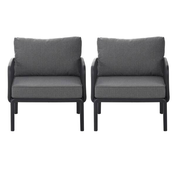 2-Piece Black Plastic Outdoor Lounge Chair with Dark Gray Cushions