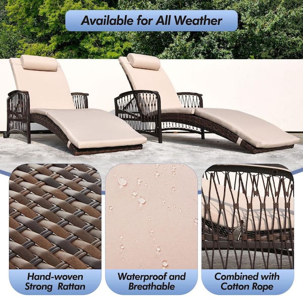 2-Piece Metal Outdoor Chaise Lounge with Light khaki Cushions