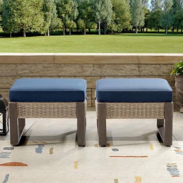 2-Piece Wicker Outdoor Lounge Chair with Dark Blue Cushions