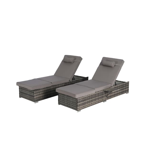 2-Piece Wicker Outdoor Lounge Chair with Dark Gray Cushions, Adjustable Backrest, Table
