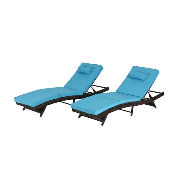 2-Piece Wicker Outdoor Lounge Chair with Light Blue Cushions