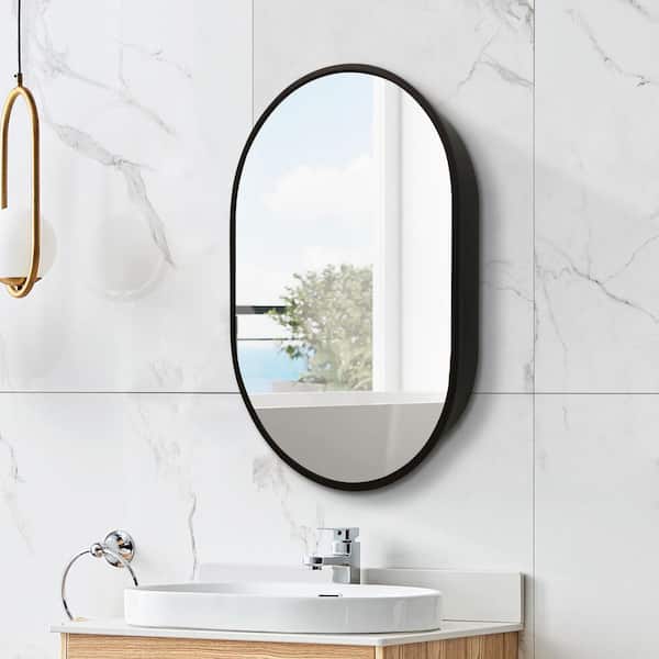 21 in. W x 31 in. H Oval Metal Wall Mount Bathroom Medicine Cabinet with Mirror and Storage
