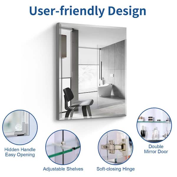 24 in. W x 30 in. H Rectangular Aluminum Medicine Cabinet with Mirror and Adjustable Shelves
