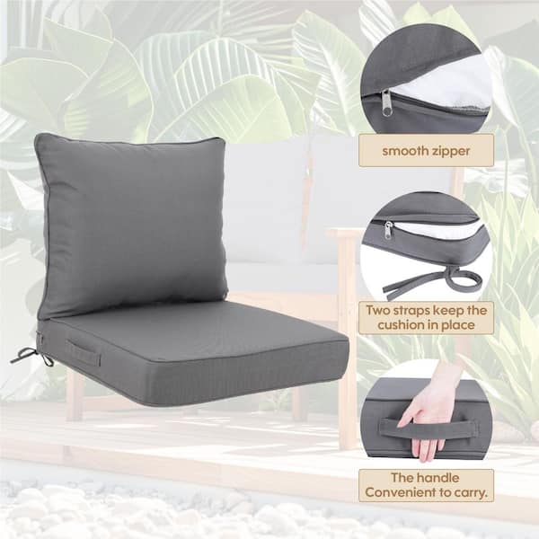 24 x 24 x 4. 3 Deep Seat Outdoor Lounge Chair Patio Chair 2 Replacement Dark Gray Cushion Sets with Pillows