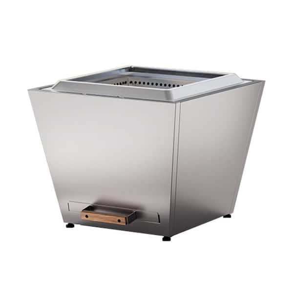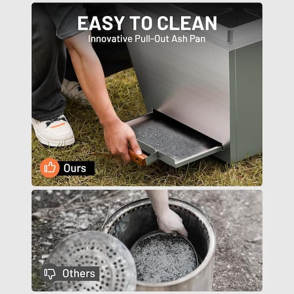 25 in. Silver Stainless Steel Wood Burning Outdoor Smokeless Fire Pit Fireplaces with Pull-Out Ash Pan, Handle