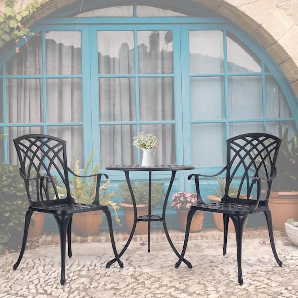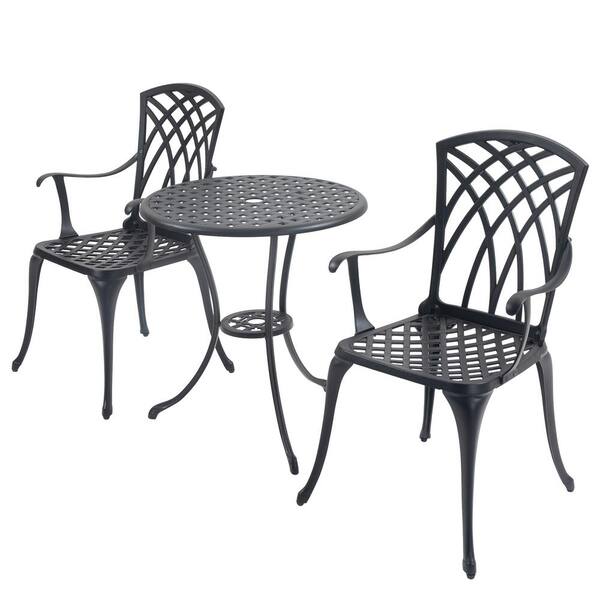 3-Piece Black Metal Patio Conversation Set with Umbrella Hole