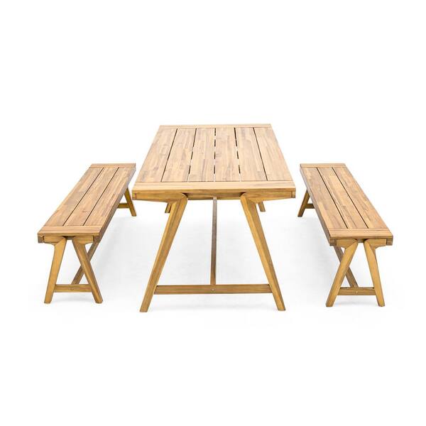 3-Piece Brown Acacia Wood Outdoor Dining Set