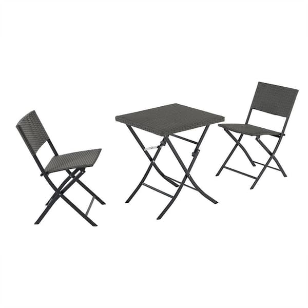3-Piece Gray Rattan Square Outdoor Bistro Set
