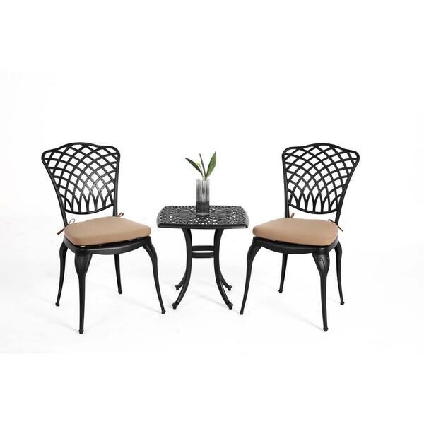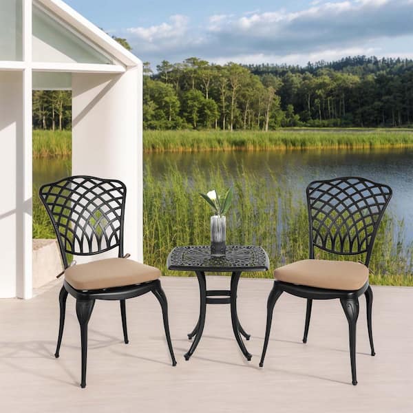 3-Piece Metal Outdoor Bistro Set with Brown Cushions, Umbrella Hole