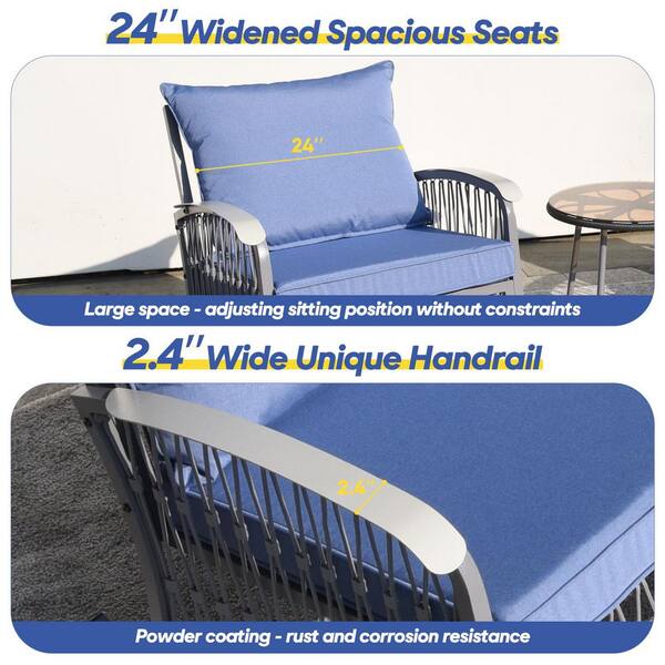 3-Piece Metal Patio Conversation Set with Blue Cushions