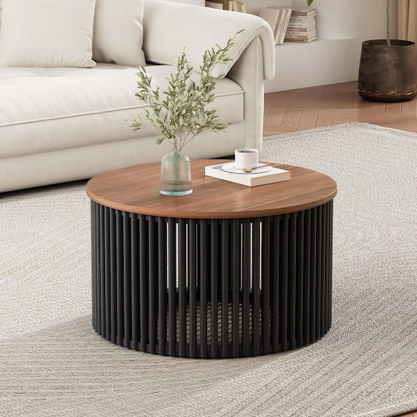 30" Brown Acacia Wood Round Outdoor Coffee Table