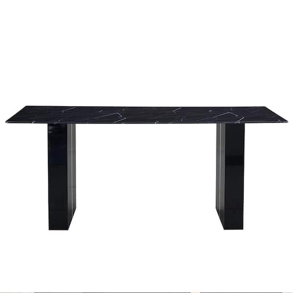30 in. H Rectangular Outdoor Dining Table with Black Patterned Tabletop, Large MDF Legs
