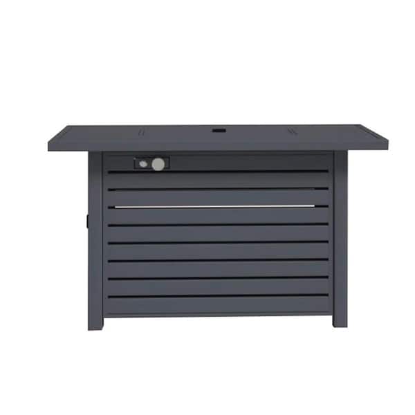 44 in. Gray Rectangular Metal Outdoor Propane Fire Pit Table with Lid