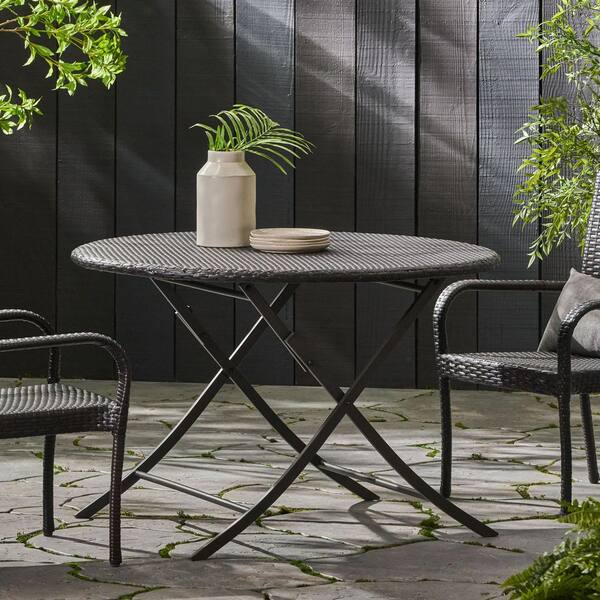 45.5 in. W Brown Multi Round Wicker Foldable Outdoor Coffee Table with Umbrella Hole
