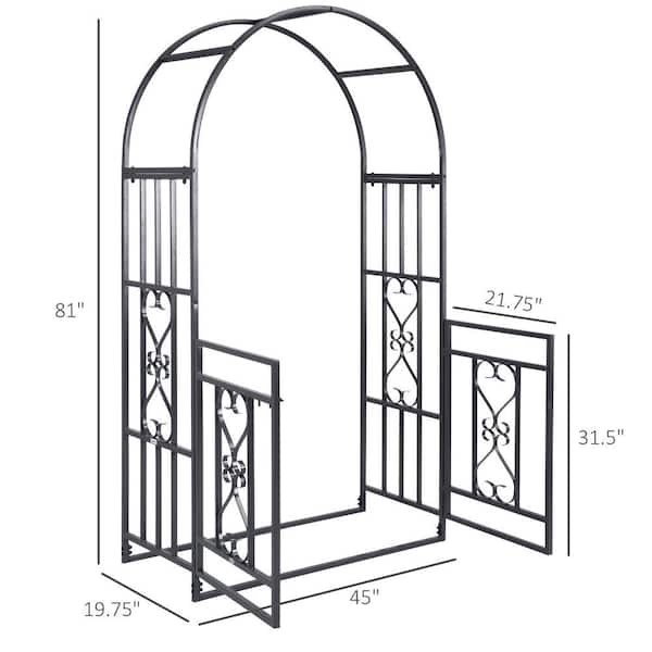 45 in. x 81 in. Black Metal Garden Arch Arbor Trellis with Double Doors, Locking Gate, Climbing Vine Frame Heart Motifs