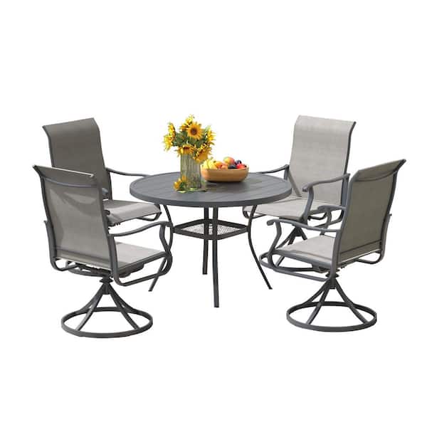 5-Piece Metal Round Outdoor Dining Set with 360° Textilene Fabric Swivel Chairs and 1.57 in.-1.90 in. Umbrella Hole