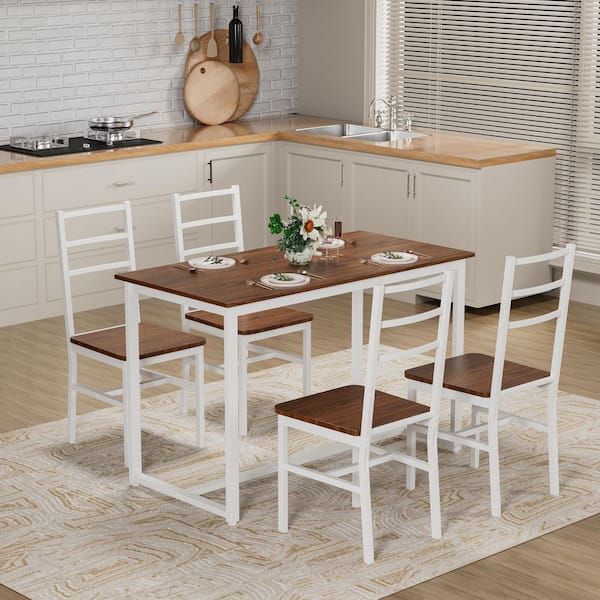 5-Piece Wood Rectangle Indoor Outdoor Bistro Set Dining Set for Small Place, Kitchen, Dining Room, Patio