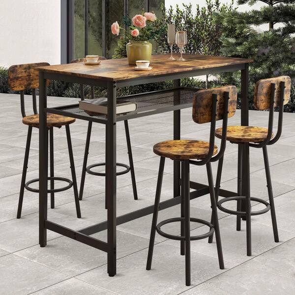 5-Piece Wood Rectangle Indoor Outdoor Bistro Set Dining Set with Backrest and Partitions