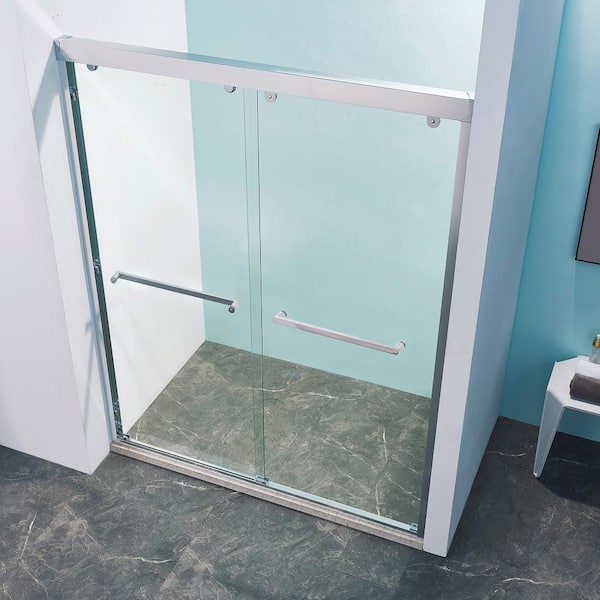 56 to 60 in. W x 76 in. H Double Sliding Aluminium Alloy Frame Shower Door in Chrome with Clear Glass