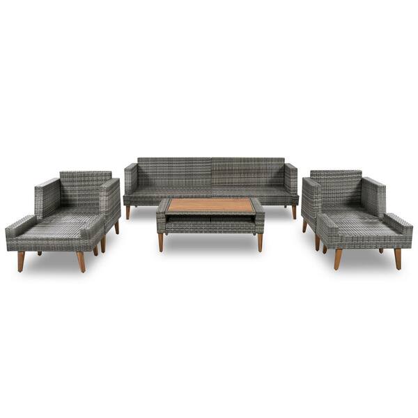 6-Piece All Weather PE Gray Wicker Outdoor Sectional Sofa Set with Beige Cushions and Coffee Table