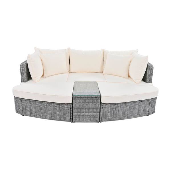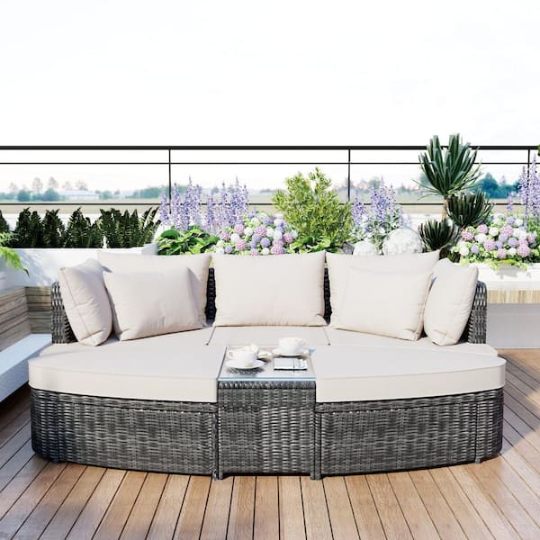 6-Piece Wicker Patio Conversation Set with Beige Cushions, Coffee Table