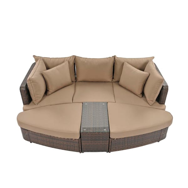6-Piece Wicker Patio Conversation Set with Brown Cushions, Coffee Table
