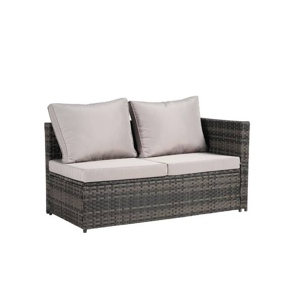 6-Piece Wicker Patio Conversation Set with Light Gray Cushions, Glass Table, Pillows