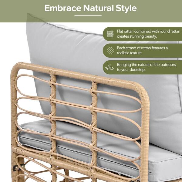 7-Piece Brown Wicker Patio Conversation Set with Gray Cushions, Pillows