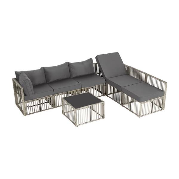 7-Piece Gray Patio Conversation Set with Gray Cushions