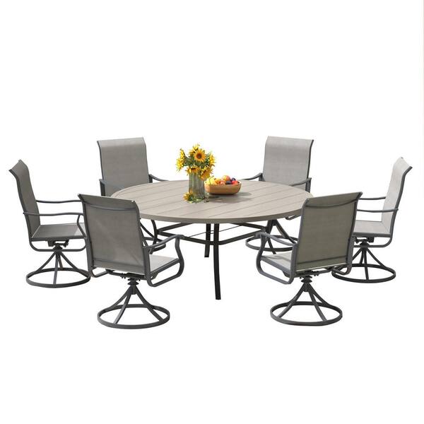 7-Piece Metal 53 in. Round Outdoor Dining Set 360° Textilene Fabricswivel Chairs and 1.57 in. 1.90 in. Umbrella Hole