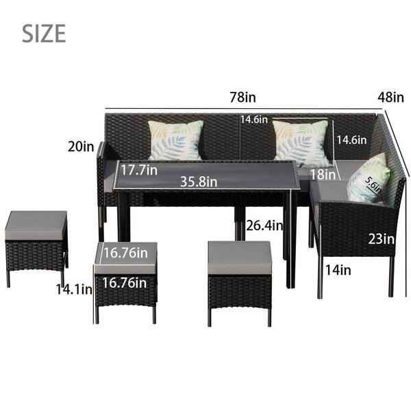 7-Piece Wicker Outdoor Sofa Sectional Set with Gray Cushions and 3 Pillows