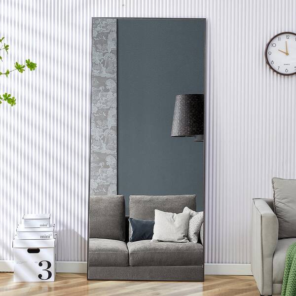 71 in. W. x 31.5 in. H Rectangle Solid Wood Framed Gray Mirror for Bedroom