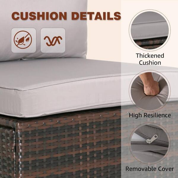 8-Piece Brown Wicker Patio Conversation Set with Gray Cushions, Corner Storage Box