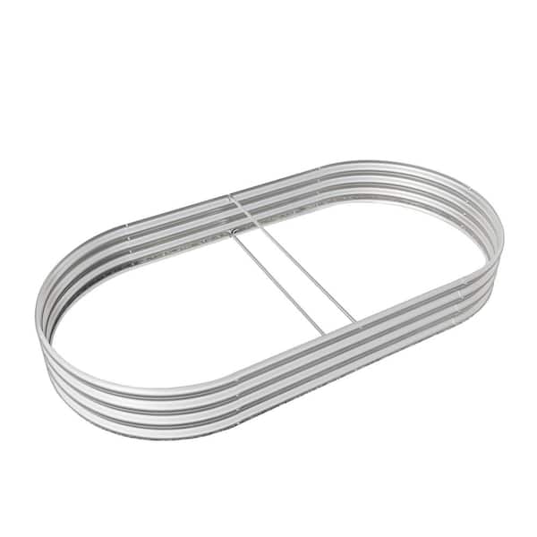 88.98 in. x 44.68 in. x 11.4 in. Oval Silver Metal Raised Garden Bed, Outdoor Garden Raised Planter Box