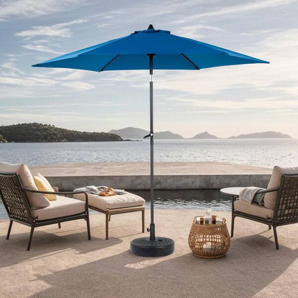 9 ft. Metal Tiltable Market Patio Umbrella in Dark Blue (Base Not Included)