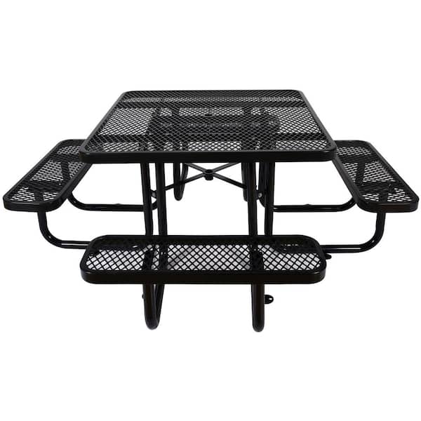 Black 82.9 in. Square Steel Picnic Table with Umbrella Pole for Seats 6-8 People