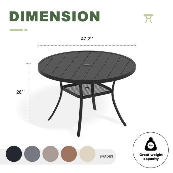 Black Metal 47 in. All Weather Round Outdoor Dining Table with 1.57 in.-1.90 in. Umbrella Hole for 6 People