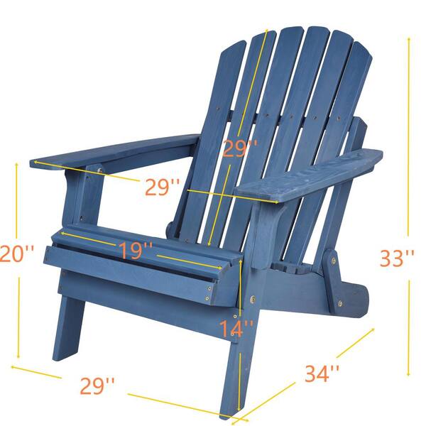 Blue Oversize Folding Wooden Adirondack Chair with Pre-Assembled Back Rest and Seat Board (Set of 1)